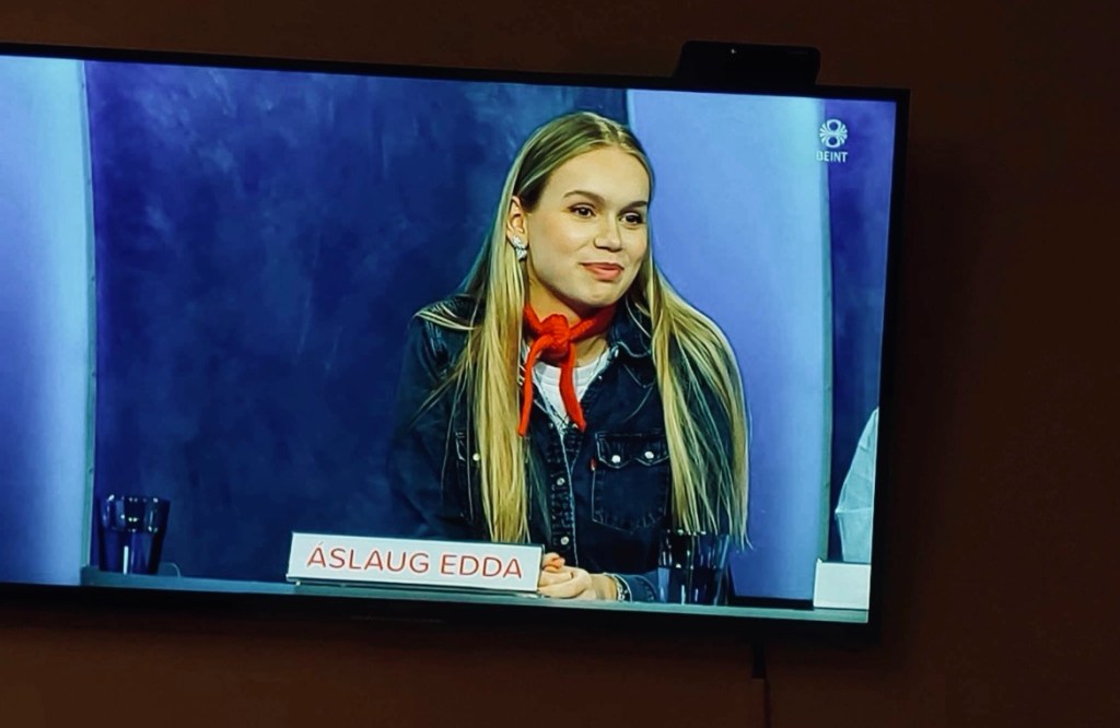 Bæði Áslaug og Maggi tóku sig vel út á skjánum. Eða hnakkinn á Magga þ.e.a.s því það sást ekki meira í hann en akkúrat hnakkann.